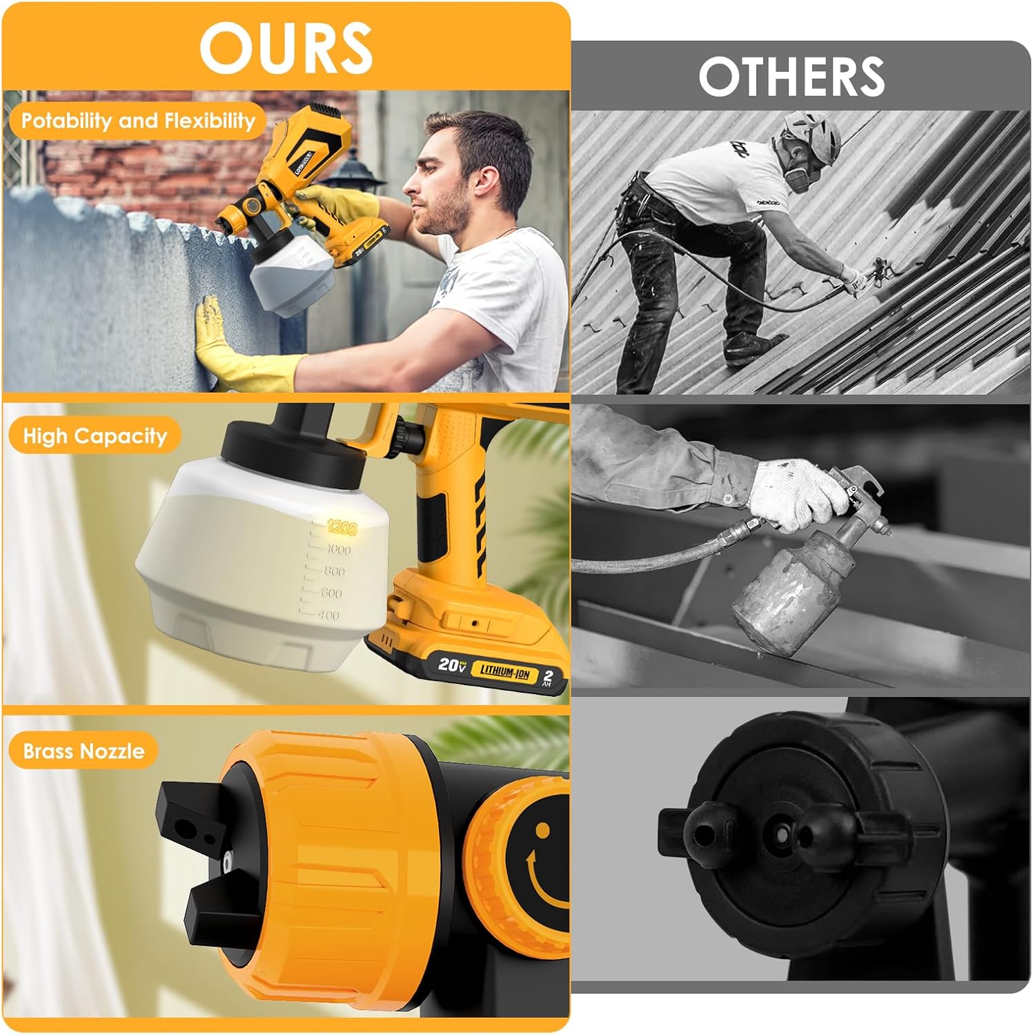 Compatible with Dewalt 20V MAX batteries and other Cordless Tool Battery Packs with the similar port(Battery NOT Included). The portable desgin without troublesome of cords and outlets, you can enjoy the convenience of spraying operation everywhere indoor and outdoor.